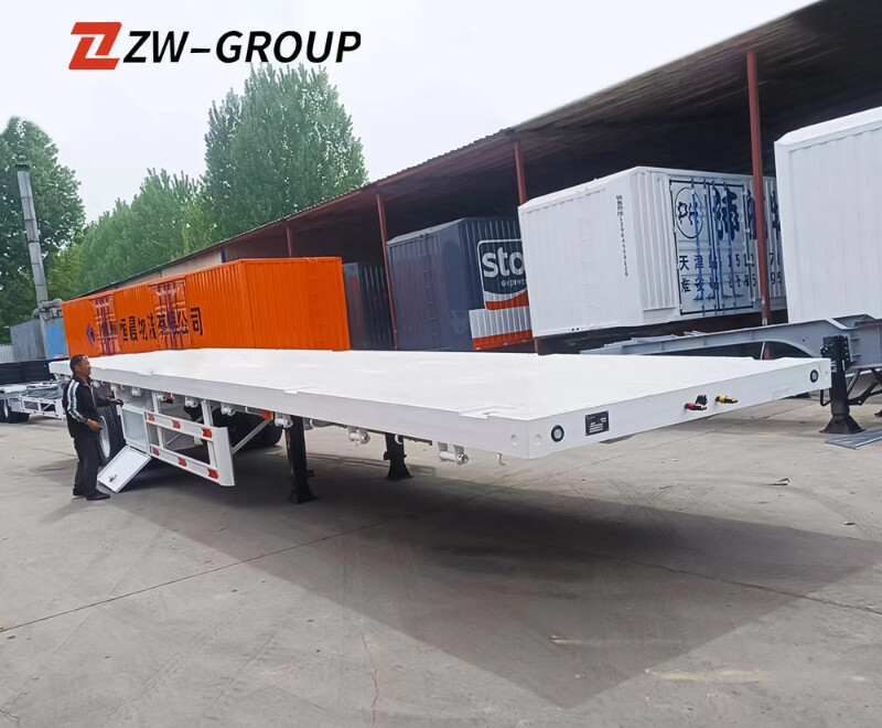 تعيد مقطورة ZW Group ثنائية المحور بطول 40 قدمًا المصنوعة من الفولاذ تعريف الموثوقية في نقل الحاويات والبضائع الثقيلة. تم تصميم هذه المقطورة المسطحة للخدمة الشاقة بدقة لتناسب الخدمات اللوجستية في الشرق الأوسط، حيث تجمع بين سعة التحميل الفائقة (40,000 كجم) وسلامة هيكلية لا مثيل لها، مما يجعلها الخيار الأمثل لقطاع النقل في عُمان.