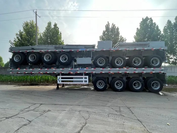 علاوة على ذلك، تتميز المقطورة المسطحة الثقيلة بتصميم معزز للرقبة والإطار. يتم وضع العارضات والعوارض الجانبية بشكل استراتيجي لدعم الأحمال المركزة، مما يمنع سطح الشحنة من الترهل أو التشوه حتى بعد سنوات من التشغيل الثقيل المستمر على التضاريس غير المستوية.