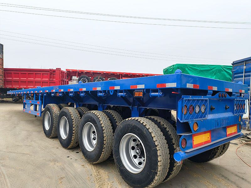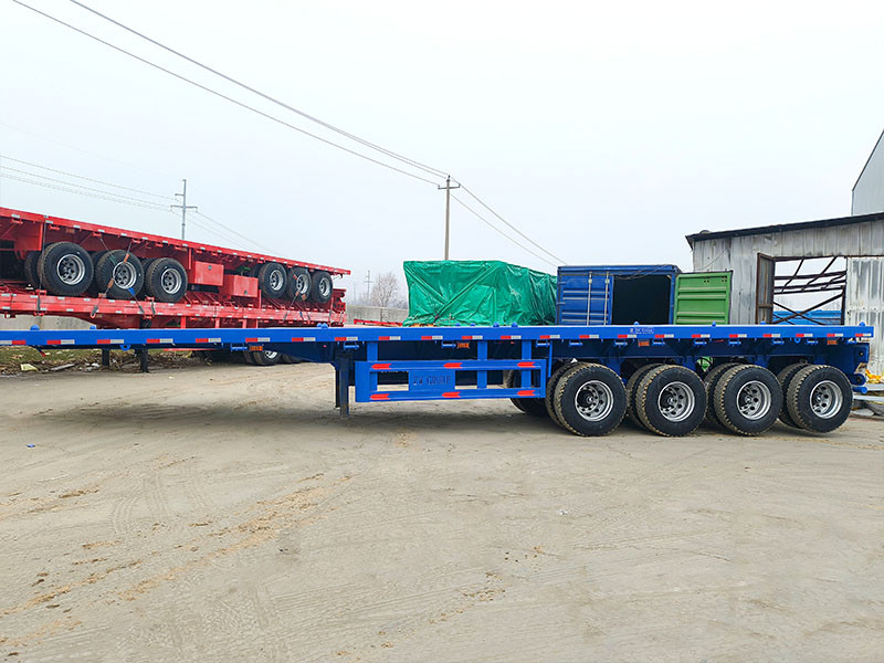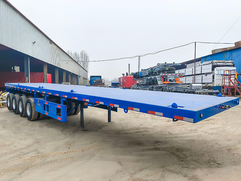 El diseño estructural del remolque se centra en una plataforma de 13,000 mm de longitud y 2,500 mm de ancho, diseñada para adaptarse a perfiles de carga estandarizados y actuar como una alternativa directa y eficiente a los modelos comunes de plataforma larga, como las configuraciones de remolques de plataforma para contenedores de 48/53 pies. La geometría de la plataforma admite una amplia gama de tipos de carga, desde acero estructural y maquinaria hasta materiales de construcción modulares, asegurando que las cargas se coloquen directamente sobre los ejes para un equilibrio óptimo.