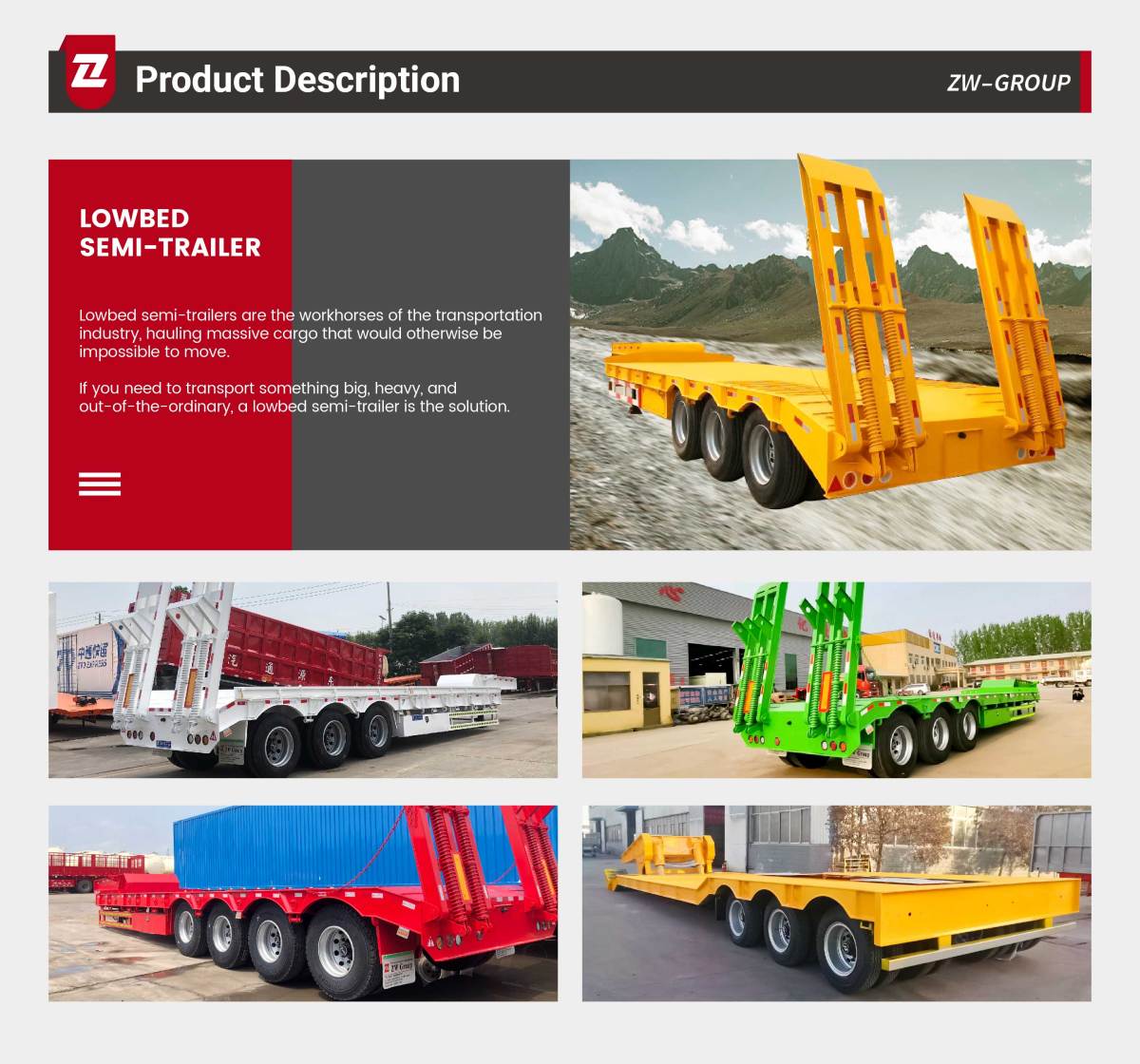 El remolque lowboy de 3 ejes presentado aquí combina un chasis robusto, un equipo de rodadura confiable y una operatividad práctica para enfrentar los desafíos del transporte pesado de manera confiable. Su especificación como remolque lowbed de 60 toneladas lo convierte en una opción rentable para organizaciones que transportan cargas grandes, pesadas y difíciles donde la altura de la plataforma, la resistencia y las operaciones de carga seguras son críticas.
