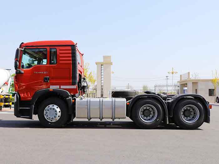 Construit autour d'un châssis échelle en acier haute résistance, le camion tracteur HOWO TX 6x4 allie rigidité torsionnelle et facilité d'entretien. L'essieu avant HF9 en acier forgé, d'une capacité de 9 tonnes, et les essieux arrière HC16 à double réduction, d'une capacité de 16 tonnes, forment l'ossature mécanique pour une conduite stable et une durabilité à long terme. L'essieu arrière renforcé et le système de suspension robuste supportent des poids totaux en charge (PTAC) allant jusqu'à 60 tonnes en utilisation pratique, tandis que la capacité de charge de la sellette de cinquième roue de 16 tonnes permet des accouplements avec des semi-remorques lourdes pour conteneurs et vracs.