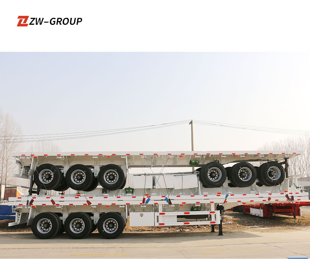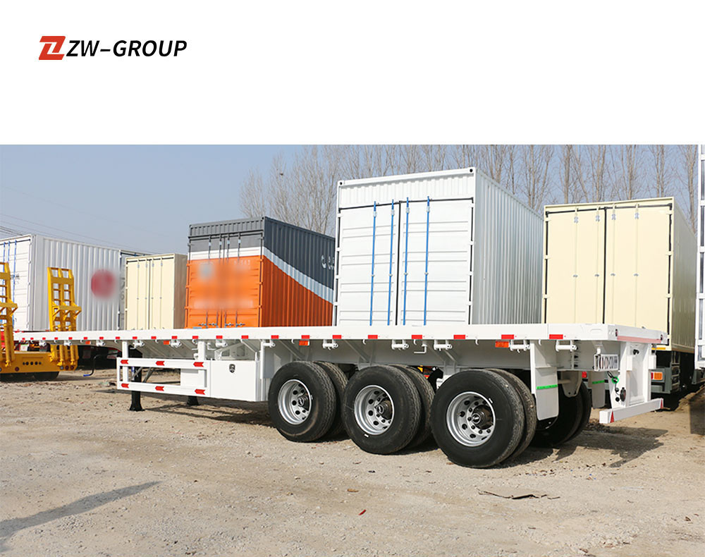 La résistance fondamentale de notreremorque plateau à 3 essieux réside dans la structure de sa poutre principale. Nous utilisons une technologie avancée de soudage à l'arc submergé pour créer une structure unifiée qui résiste à la torsion et à la flexion. En utilisant de l'acier haute résistance Q345B, ZW Vehicle Group garantit que chaque remorque camion plateau de 12.5m peut supporter une charge utile nominale allant jusqu'à 60 tons sans compromettre la longévité du châssis. Cette précision technique est ce qui distingue notre équipement des alternatives génériques qui souffrent d'un affaissement du châssis au fil du temps.