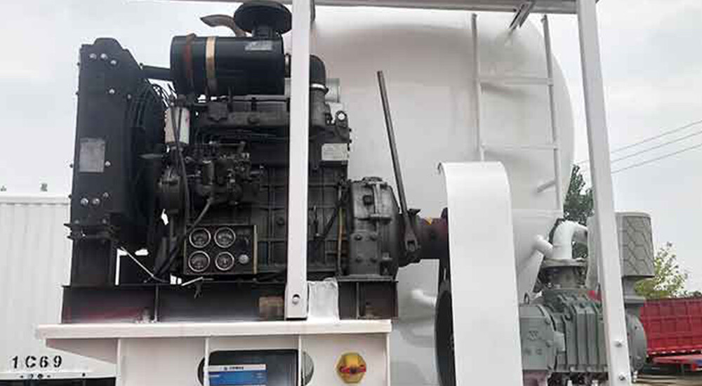 Power & Pneumatics: Diesel-driven compressors (10–14 m³/min) supply the air volume needed for pneumatic conveying and unloading at customer terminals.