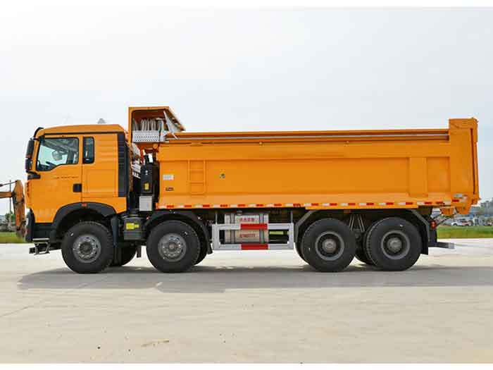 A espaçosa carroceria de carga (7300 x 2300 x 1500 mm) foi projetada para maximizar o volume, mantendo considerações de centro de gravidade sob controle. A configuração do chassi 8x4 oferece distribuição de carga superior e estabilidade durante o carregamento, transporte e operações de basculamento. Para operações que priorizam menos viagens e maior tonelagem por transporte, esta configuração oferece economias tangíveis no custo por tonelada.