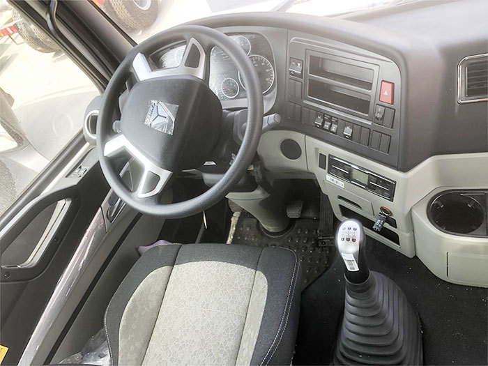 Conforto e segurança do motorista: cabine Howo NX com suspensão a ar de 4 pontos, direção ajustável, assento com suspensão a ar, ABS, ESC e uma câmera de ré integrada melhoram o conforto em turnos longos e a segurança operacional.