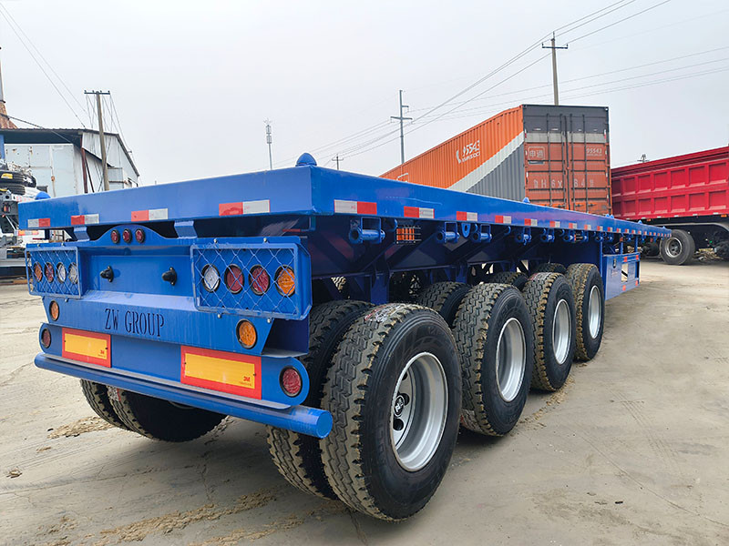 O layout estrutural do reboque centra-se em um comprimento de deck de 13.000 mm e uma largura de deck de 2.500 mm, projetado para se ajustar a perfis de carga padronizados e servir como uma alternativa direta e eficiente aos modelos comuns de deck longo, como configurações de reboque plataforma para contêineres de 48/53 pés. A geometria do deck suporta uma ampla variedade de tipos de carga, desde aço estrutural e maquinário até materiais de construção modulares, garantindo que as cargas fiquem diretamente sobre os eixos para um equilíbrio ideal.