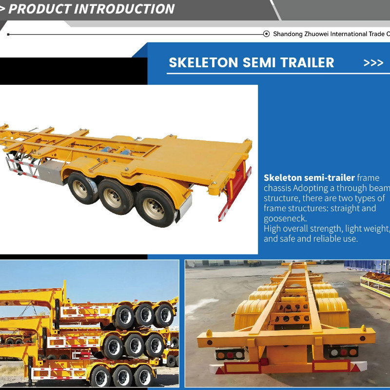 O Reboque Esqueleto de 3 Eixos 40ft para Contentores do Grupo ZW redefine a eficiência na logística intermodal. Projetado com precisão, este reboque combina durabilidade com design inteligente para lidar com as operações mais exigentes de transporte de contentores.