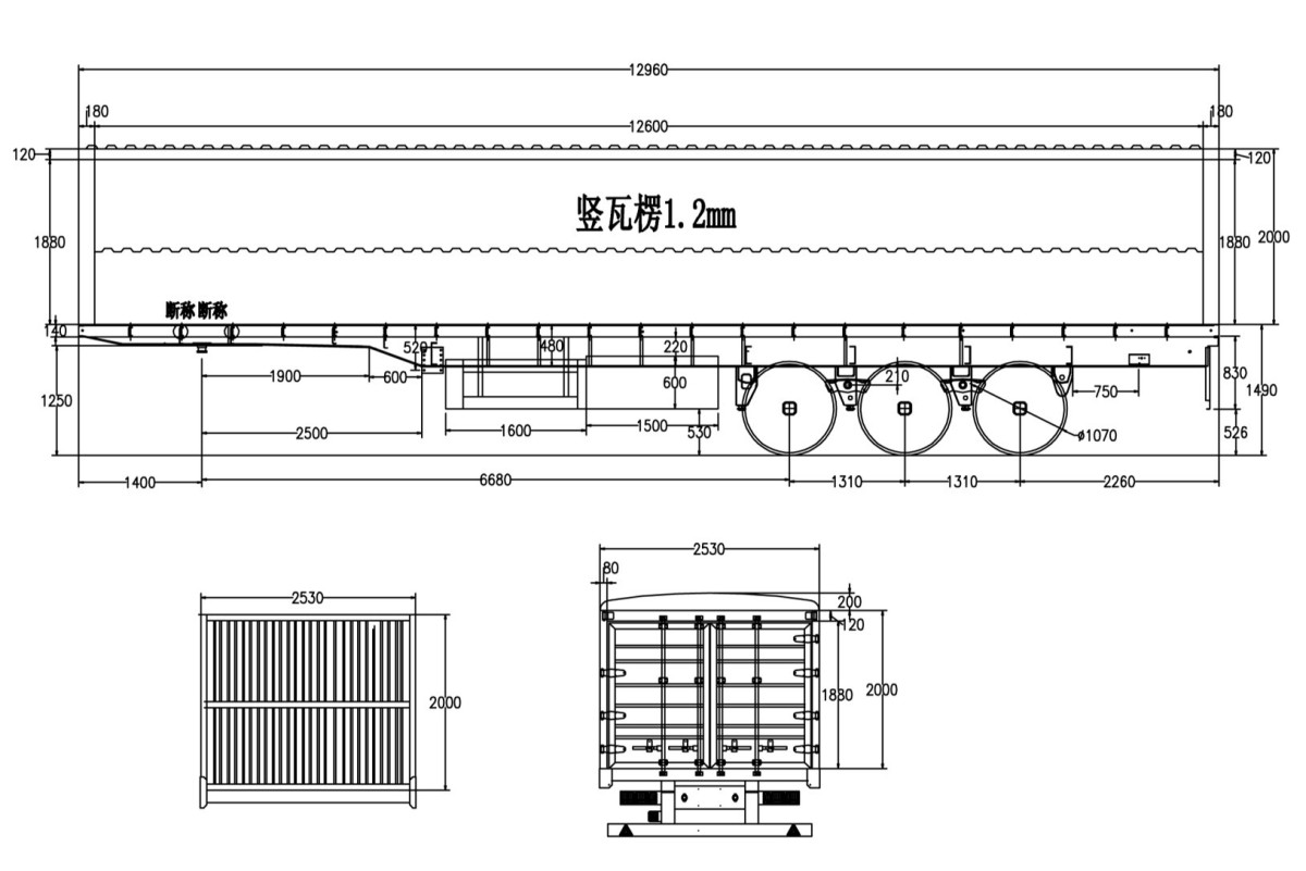 Os operadores apreciarão como o design fechado deste semi-reboque de caixa de carga simplifica a proteção da carga e medidas de segurança. O corpo totalmente fechado reduz a exposição a intempéries e detritos da estrada, o que é particularmente valioso ao transportar mercadorias embaladas, carga paletizada, eletrônicos ou outras cargas sensíveis à umidade. O volume interno considerável e as dimensões externas padronizadas tornam o reboque compatível com docas de carga e layouts de armazém comuns, melhorando os tempos de retorno.